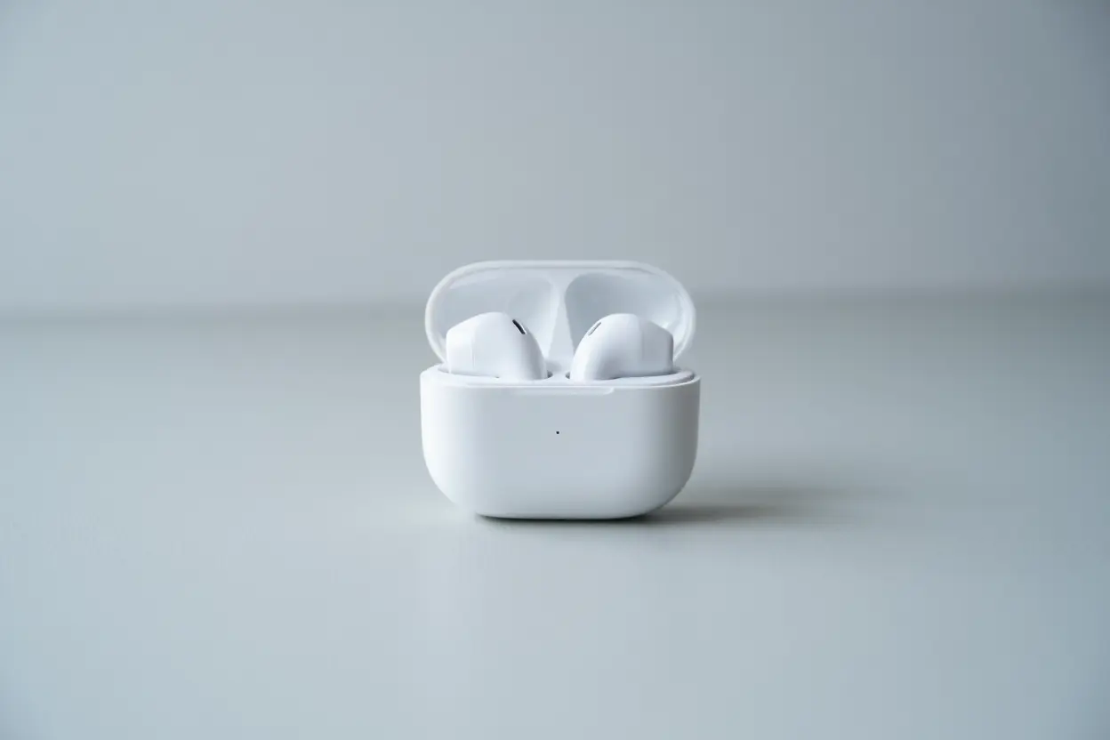 Wireless earbuds with clear sound, built-in mic, and 4-hour battery life.